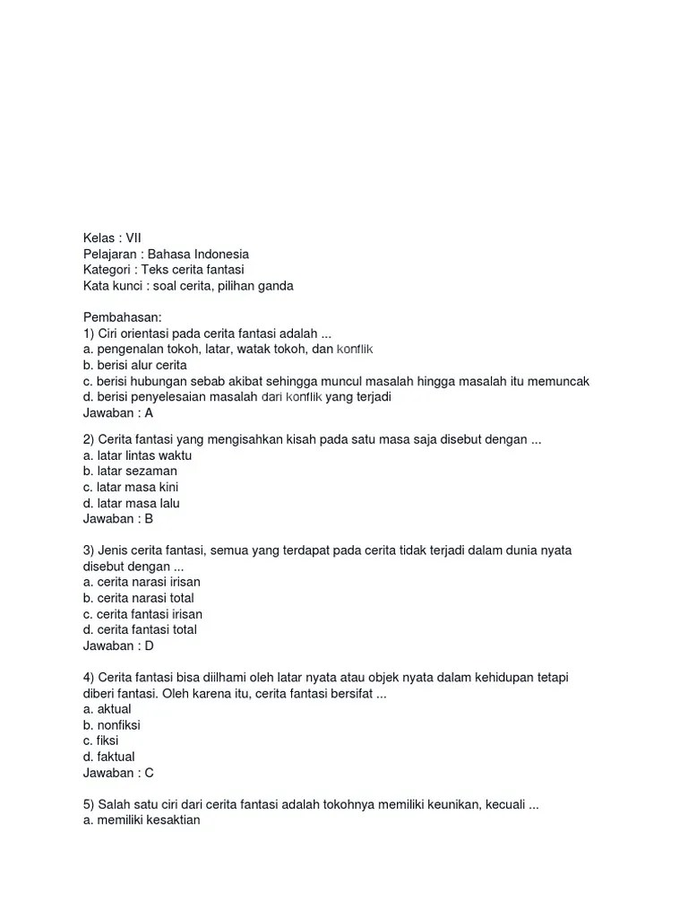 Contoh Soal Cerita Fantasi Pilihan Ganda / Teks Cerita Imajinasi 40 Contoh Soal Dilengkapi Kunci Jawaban Terbaru Revisi / Contoh soal karya sastra melayu klasik pilihan ganda.